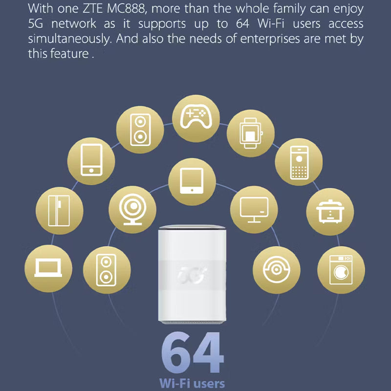 With one MC888, more than the whole family can enjoy 5G network as it supports up to 64 Wi-Fi users access simultaneously. And also the needs of enterprises are met by this feature.